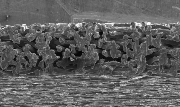 当社の技術では、金属繊維を切断してもほつれが生じません。